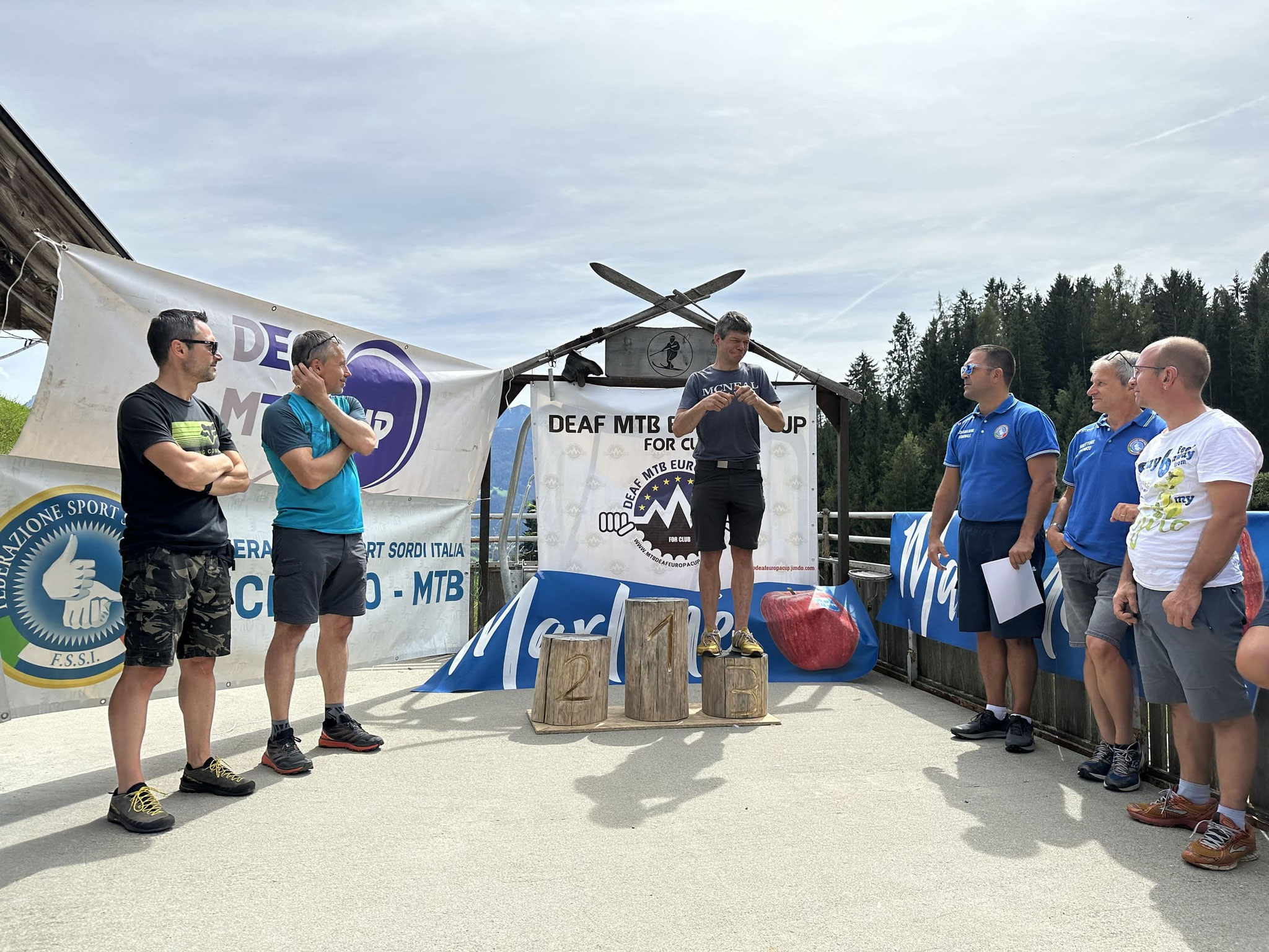 Am vergangenen Wochenende vom 2. und 3. September fanden in Feldthurns die Mountainbike Rennen gültig für die italienische FSSI-Meisterschaft + Deaf MTB Cup und den Deaf MTB Europacup für Vereine statt. Insgesamt nahmen 31 Athleten aus Italien, Österreich, Belgien, der Slowakei, Ungarn und der Ukraine teil. Veranstaltungsort waren die herrlichen Wälder von Feldthurns mit Blick auf die Dolomiten von Villnöss und Gröden. Das Cross Country Short Track-Rennen fand am Samstagnachmittag, dem 2. September, auf einer 2,5 km langen Ringstrecke teils im Wald und teils auf dem Land statt. Die Strecke war sehr technisch mit einem harten Anstieg und vor der Ziellinie einem sehr schwierigen Abstieg. Die Rennzeit betrug 40 Minuten und die Athleten mussten bis zum Ablauf der Zeit so viele Runden wie möglich absolvieren. Hier gewann der junge italienische Nachwuchsspieler Midolo Mattia aus Brescia (16 Jahre alt), der sich nach einem harten Kopf-an-Kopf-Rennen mit dem Ungarn Földi Bence durchsetzte. An dritter Stelle stand der römische Carbone Giorgio Maria. Aus unserer Sportgruppe nahmen Irsara Michael, Dorfmann Reinhard und Marchi Marco teil. Irsara schloss mit einem hervorragenden 6. Platz ab, Dorfmann mit dem 16. und Marchi mit dem 24. Platz. Das Bergzeitfahren fand am Sonntag 3. September Vormittags auf einer Bergaufstrecke von 4 km und 400 Höhenmetern statt, die in kürzester Zeit absolviert werden musste. Der Sieg ging an den Ungar Földi Bence und Silber ging an den jungen Italiener Midolo Mattia, während Bronze an den Ungar Csonto Adam ging. Irsara belegte den 7. Platz, Dorfmann den 20. und Marchi den 28. Platz.