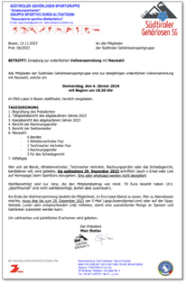 Präsident Mair Stefan lieferte den Bericht, der Vereins-Haushalt wurde von Kassierer Andy Santini veröffentlicht, die Rechnungsprüfer haben die Kassaführung genehmigt. Die Sektionsleiter berichteten kurz von den Geschehnissen des abgelaufenen Jahres.